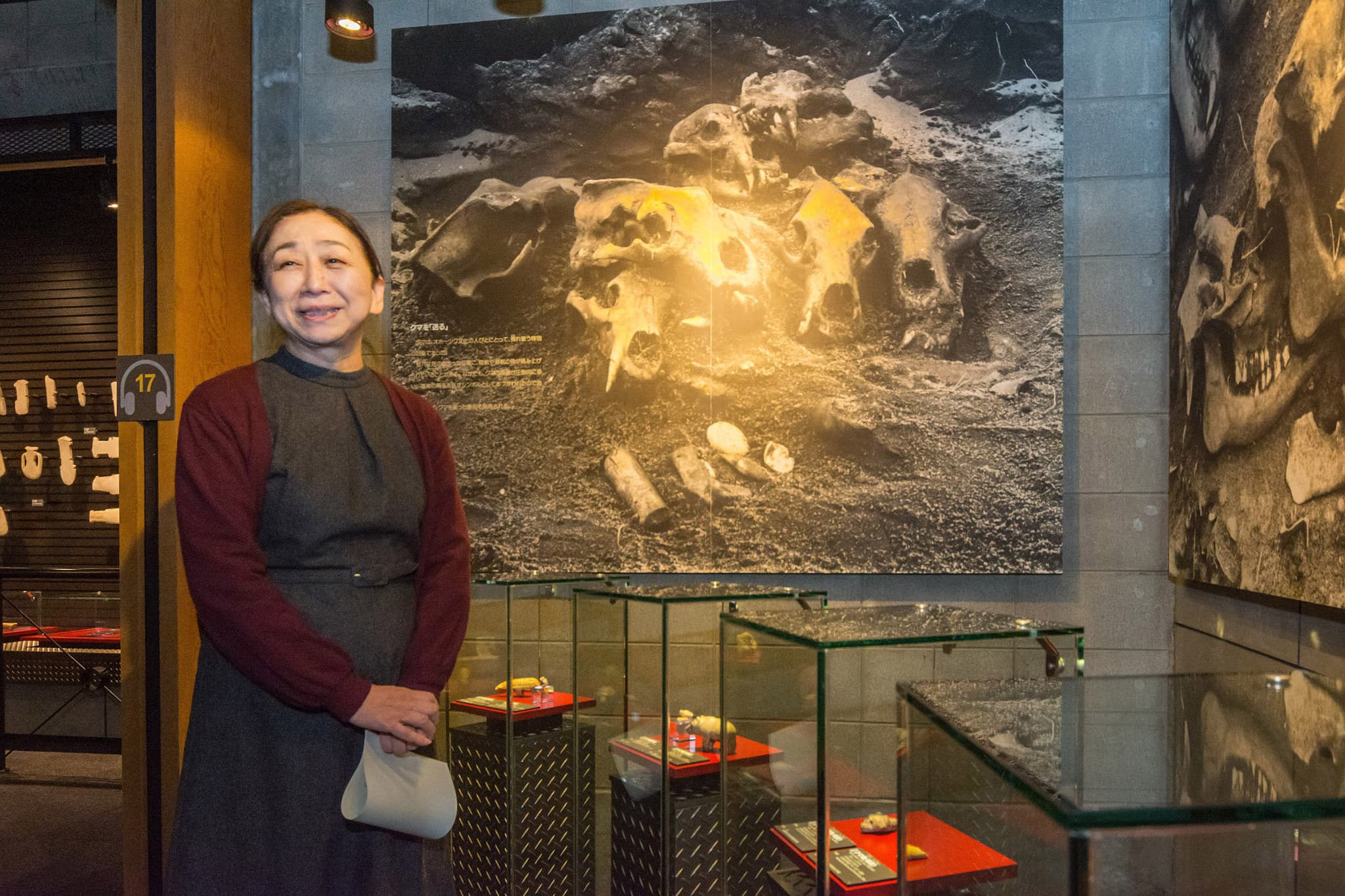 北海道立北方民族博物館の学芸主幹、笹倉いる美(ささくら いるみ)さんはこう語る。「歯(牙)は硬いので彫るのも難しいと思いますが、とても素敵ですよね。襟や襞(ひだ)、くびれが表現され、背中に枠のようなものも見えます。この服は何でできているのかと思いますか。布を織ることは考えづらいので、動物の皮革かなと。そうすると皮をなめすなどの関連技術もあったのだろうと考えたり、背中のラインはシャマンという霊能者が着ける胴衣(どうい)かもしれないと思ったり」。