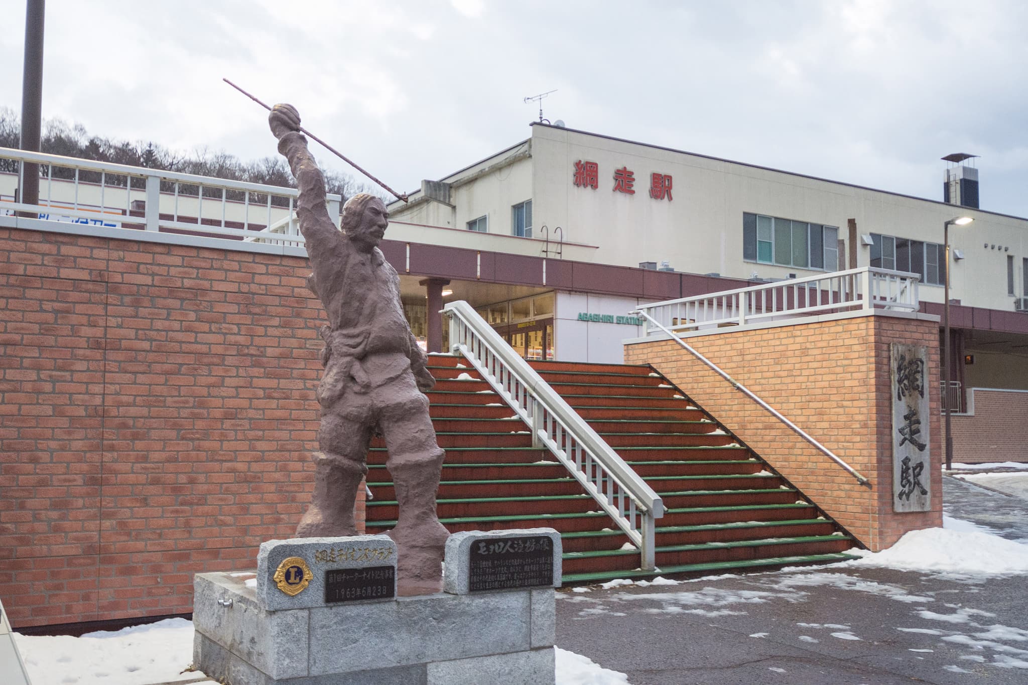 宝物に触れた思いで札幌に帰るべく網走駅に戻ると、オホーツク人が駅頭で迎えてくれた。「モヨロ人漁労の像」となって、銛(もり)で獲物を突こうとしている。生きるためにこうして日々格闘しながらも、愛と祈り、自然への畏怖を形に残したオホーツク人。その遺産を守り、探究を続ける地域が、輝いて見えた。